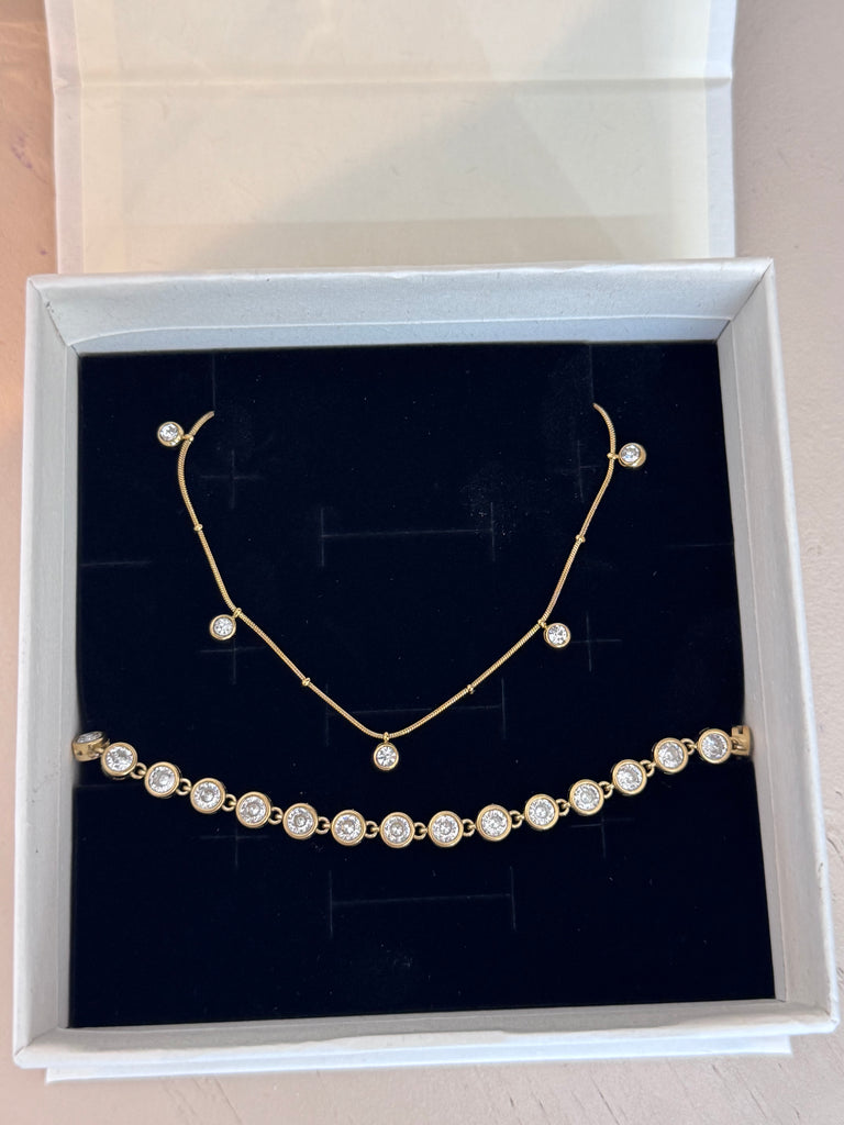 The perfect pairing: our bezel-set Barcelona Necklace and Bracelet, designed for clean, modern sparkle.  Perfect for gifting or elevating your own everyday style, this set is your go-to for polished, modern glamour.