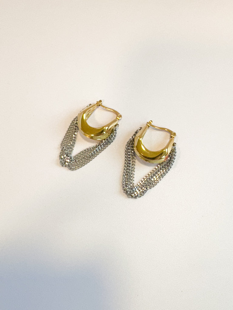 Bold gold hoops paired with fluid silver chains for a striking mixed metal moment. The Brooklyn Hoops bring edge and movement to any look creating a modern, unexpected, and effortlessly cool look.